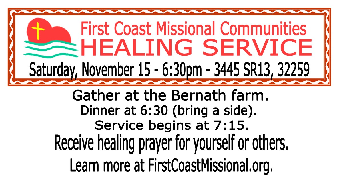On Saturday, we’ll gather under the cover of Nicholl’s Barn for dinner. Afterward, we move into a time of worship, testimony, teaching, and prayer. I am really grateful that some of the worship band from Faith Community Church will be helping us out. Members of FCMC who’ve received some training in healing prayer will be present to pray for anyone who desires healing.